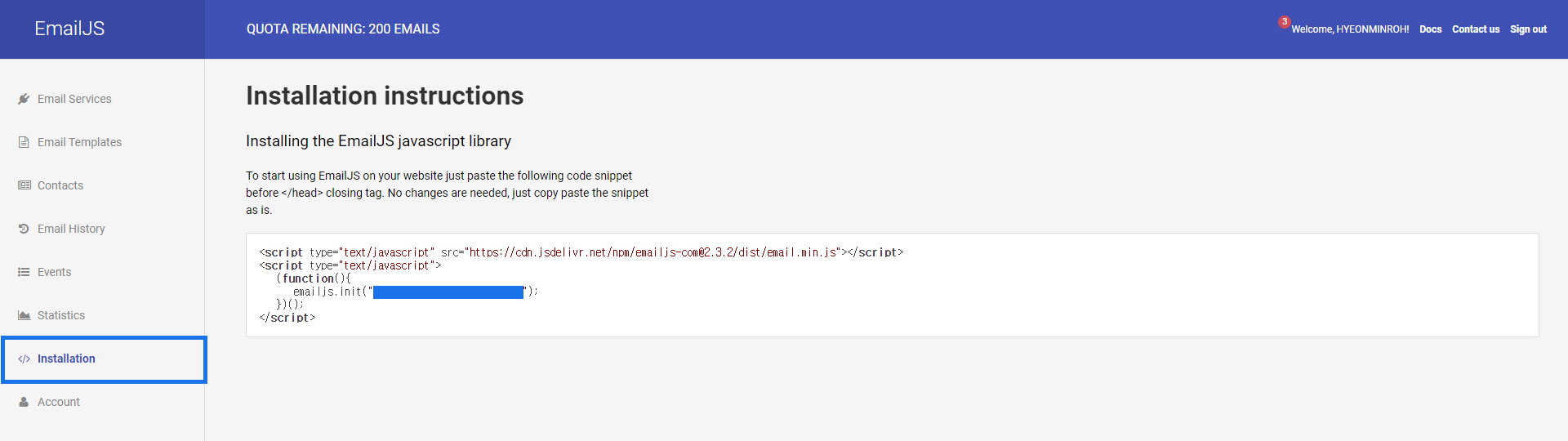 첫번째로 EmailJS SDK를 포함시켜줘야하고,