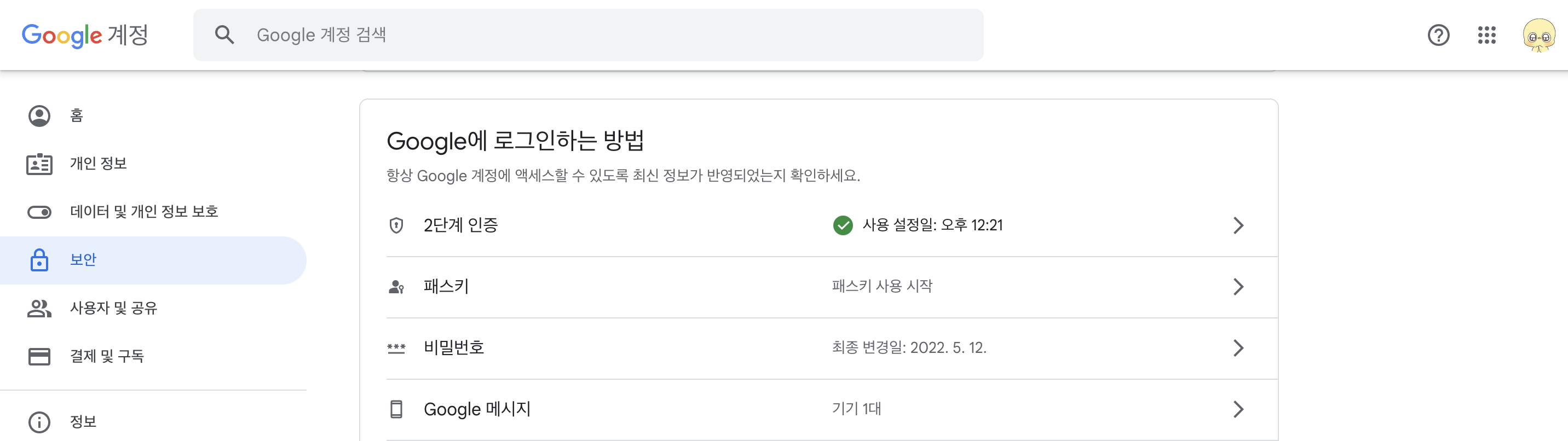 구글 우측상단의 프로필을 눌러서 Google 계정 관리로 이동 👍